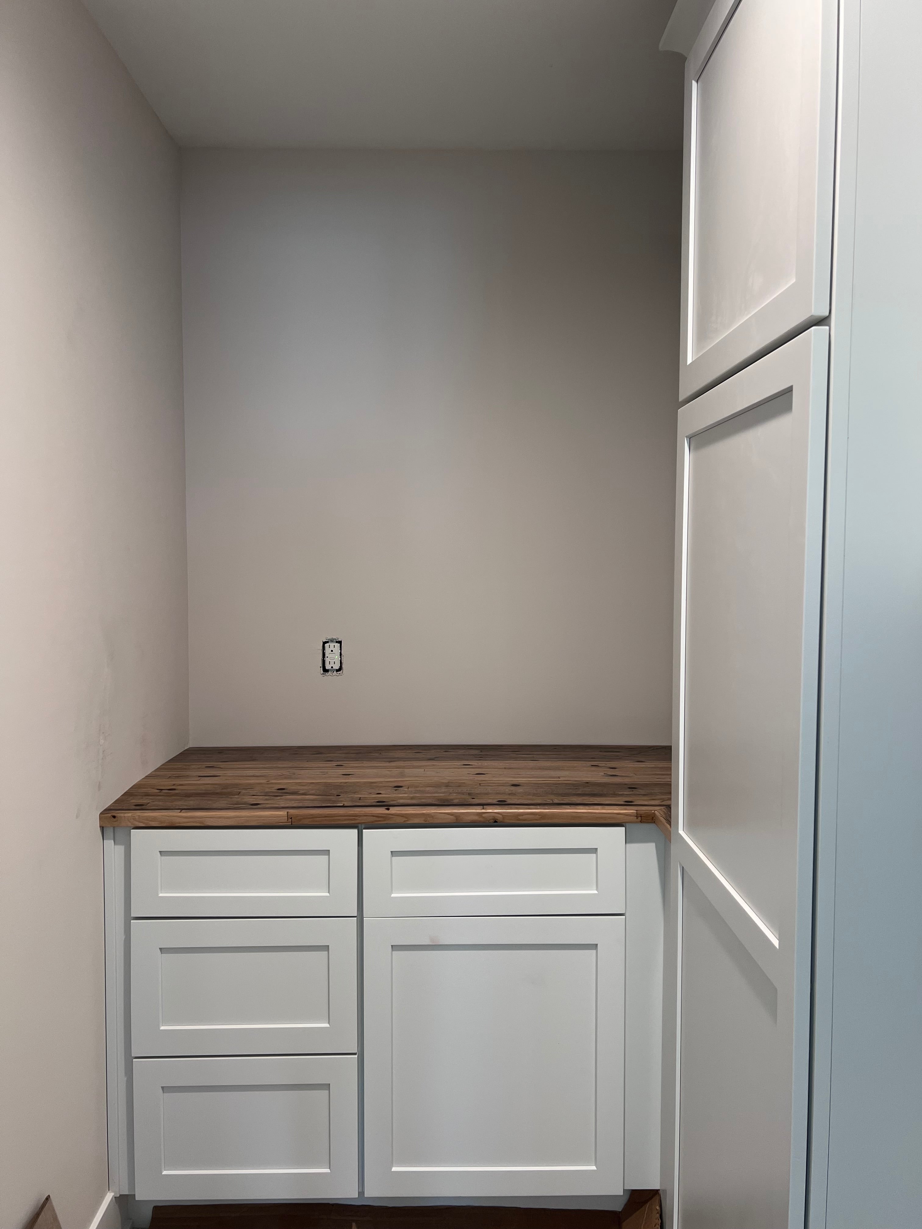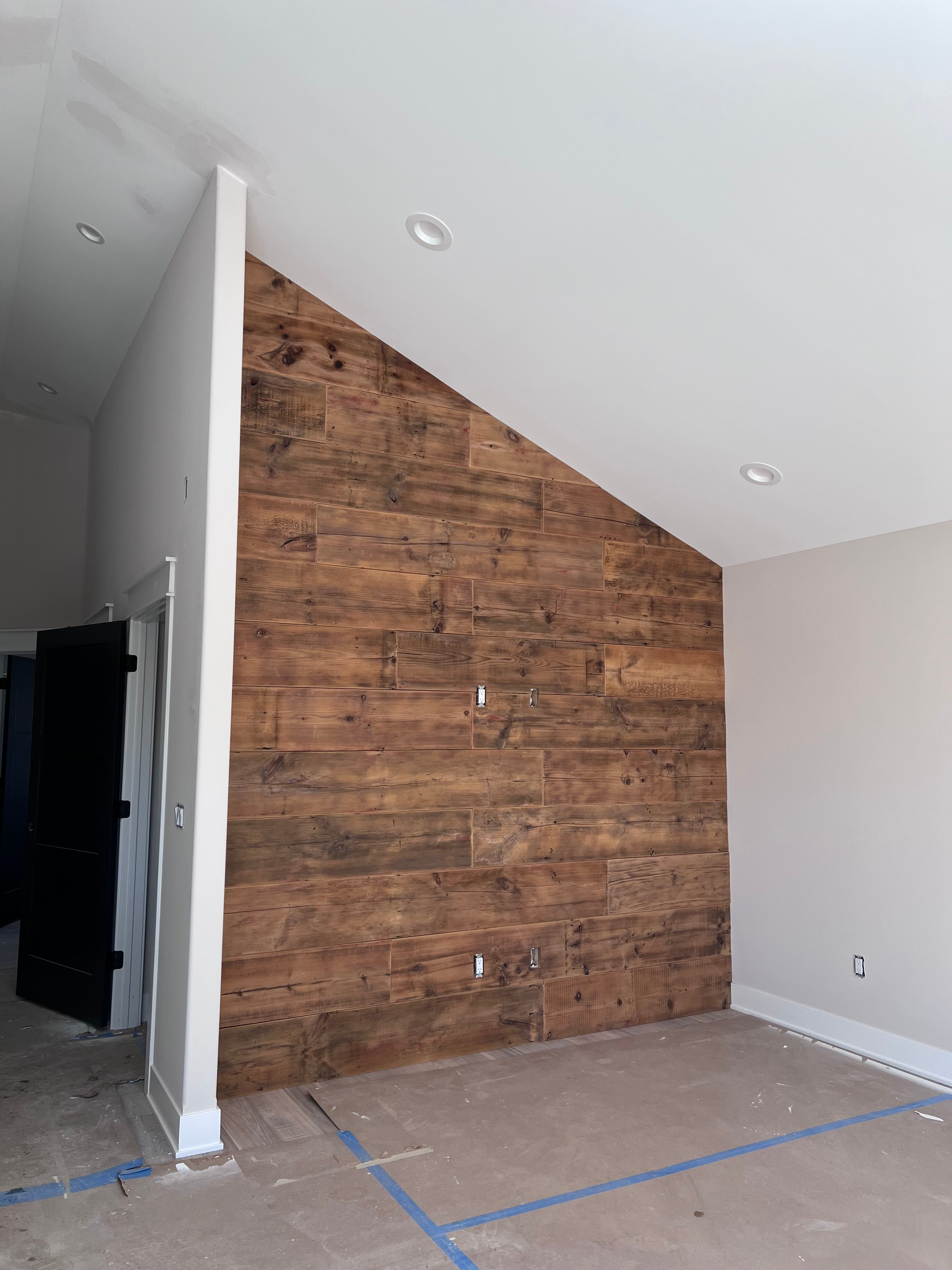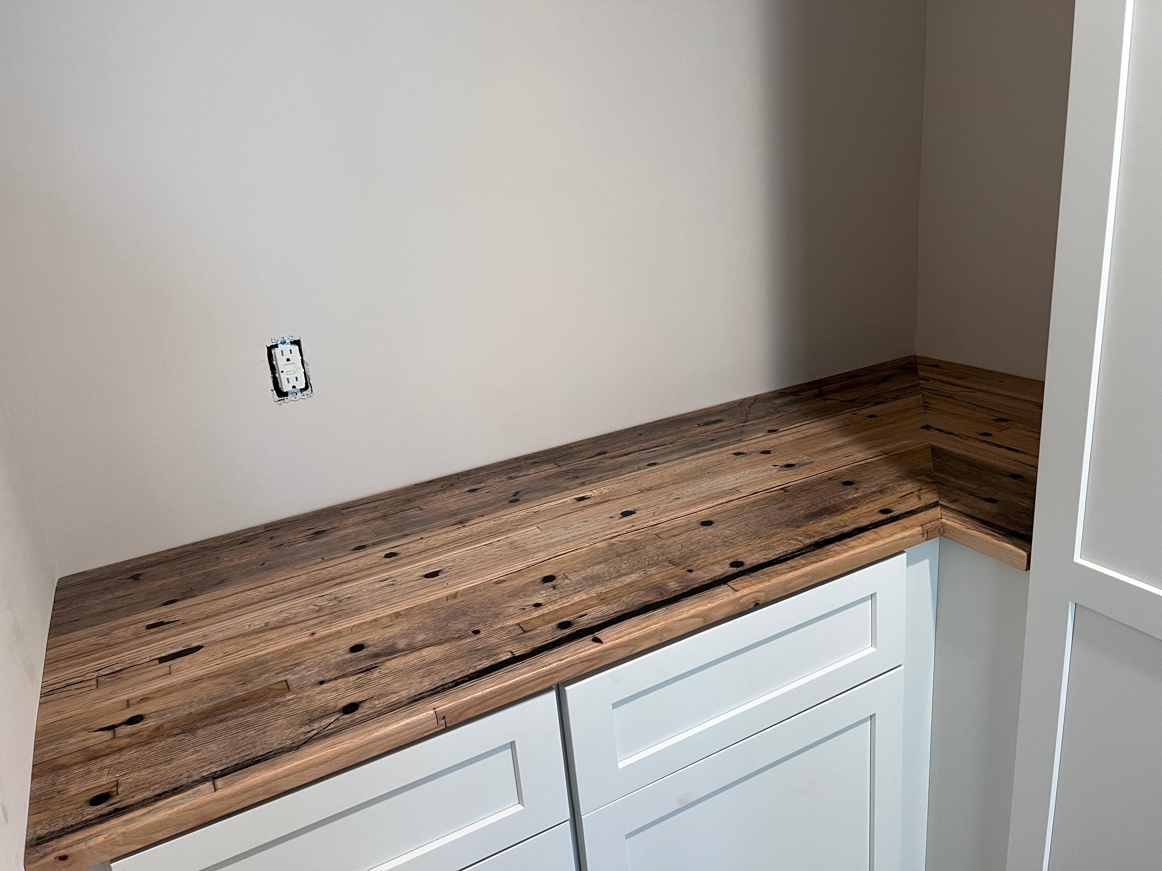 Custom accent wall, counter top, mantle, accent beams and floating shelves...