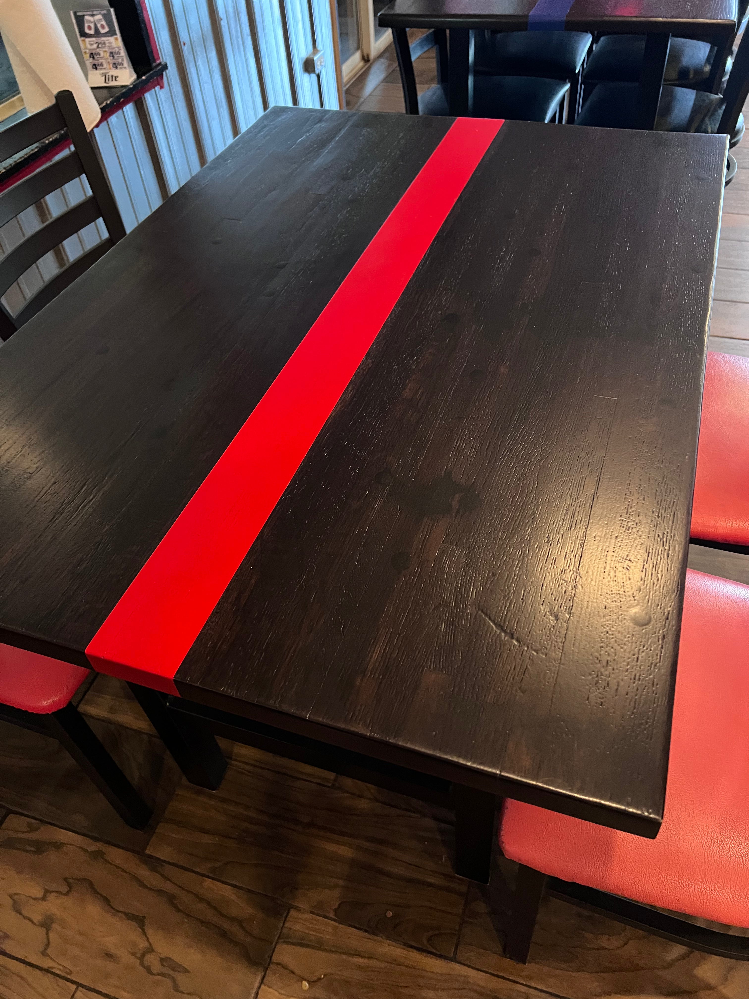 Custom shelving, tables, signage & a wine cellar...